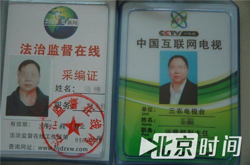 一個持有多個“媒體證件”。圖/李英強 嫌犯多為親友關(guān)系 史興平,37歲,小學(xué)文化,無業(yè),阜城縣漫河鄉(xiāng)楊小莊村人。 如果不是被抓,史興平不知還要在村里要耀武揚威多久。 漫河鄉(xiāng)以種植蔬菜瓜果聞名,兩年前,史興平還扛著鋤頭去西瓜地里除草,不知什么時候,村里人就聽說他成了記者,至于是電視臺還是報紙的記者,并沒人能說清。 7月6日,史興平穿著藍(lán)色囚服、坐在審訊椅上敘說著敲詐企業(yè)過程的畫面被央視曝光,至此,村民才知他是個假記者。 村民稱,史興平不務(wù)正業(yè),原本有個持家的好妻子,兩年前離婚走了,留下10余歲兒子跟著奶奶一起生活。 史興平近兩年一直在外漂著很少回村,一次喝酒后回村,借著酒勁要進(jìn)村委會喊廣播,被制止后罵罵咧咧的離去。村民們當(dāng)時就懷疑,就這素質(zhì)不知怎么當(dāng)上的記者,遲早會出事。 “小平很少回家,究竟在外干啥也從不對我說,只是偶爾回來給我二三百的生活費。”史興平年邁的母親告訴北京時間“暴風(fēng)眼”(微信號:btime007)。 面對警察的訊問,史興平透露,自己的“轉(zhuǎn)型”是從結(jié)識賈瑞開始的。 賈瑞和馬林為該團(tuán)伙的主要成員,兩人從事媒體工作達(dá)10余年之久,自稱“資深媒體人”。 馬林供述,之前曾在媒體做過發(fā)行工作,對新聞媒體有一定了解,也積累下許多媒體和社會人脈關(guān)系,對外一直自稱記者,時間久了大家誤以為她就是真記者,有時就連自己都深信不疑。 因長期在本地作案,與較多企業(yè)負(fù)責(zé)人形成相對熟絡(luò)關(guān)系,不便親自出面,于是,兩人轉(zhuǎn)而指使成員作案。 史興平在和賈瑞學(xué)習(xí)“采訪業(yè)務(wù)”后另立門戶,通過中國新聞播報社名義,四處網(wǎng)羅人員建起了自己的隊伍。 負(fù)責(zé)該案件的警官張偉濤向北京時間“暴風(fēng)眼”介紹,該團(tuán)伙由三個小團(tuán)伙組成,小團(tuán)伙成員相對固定,多以相熟程度、親緣關(guān)系結(jié)伙,文化程度普通不高。 第一小團(tuán)伙史興平、趙桂風(fēng)、張強、申名、杜東、孫友等11人組成;第二小團(tuán)伙馬林、宋軍等5人組成;第三小團(tuán)伙賈瑞、王強等人組成。 其中馬林、宋軍是一對“母子兵”;團(tuán)伙成員史興平、張強、孫友、申名、杜東、賈瑞曾有搶劫、盜竊等犯罪前科,孫友、杜東曾是獄友。 辦案警官張偉濤介紹,團(tuán)伙中成員文化水平普遍是小學(xué)或初中,僅有一名年齡最小、學(xué)歷最高的李光,大學(xué)畢業(yè)后因未找到合適就業(yè)單位,加入該團(tuán)伙。